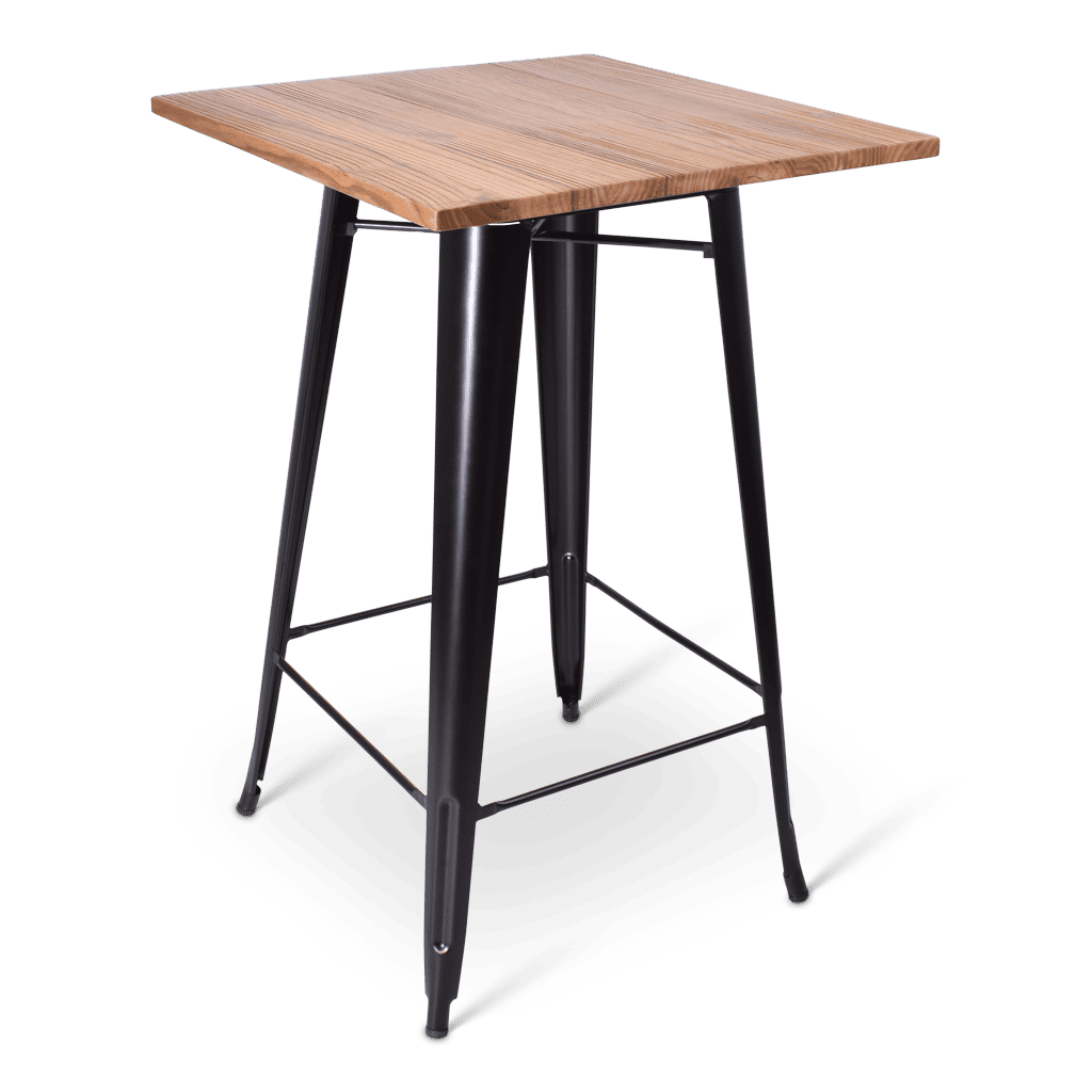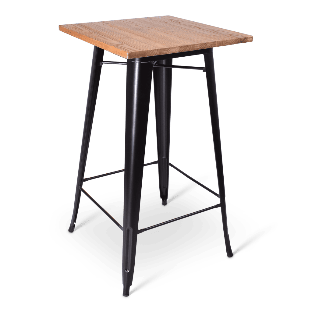 Robuust en met een vintage tintje, dat is de statafel Indus. Met een onderstel van zwart metaal en verschillende tafelbladen past deze statafel op elke locatie.