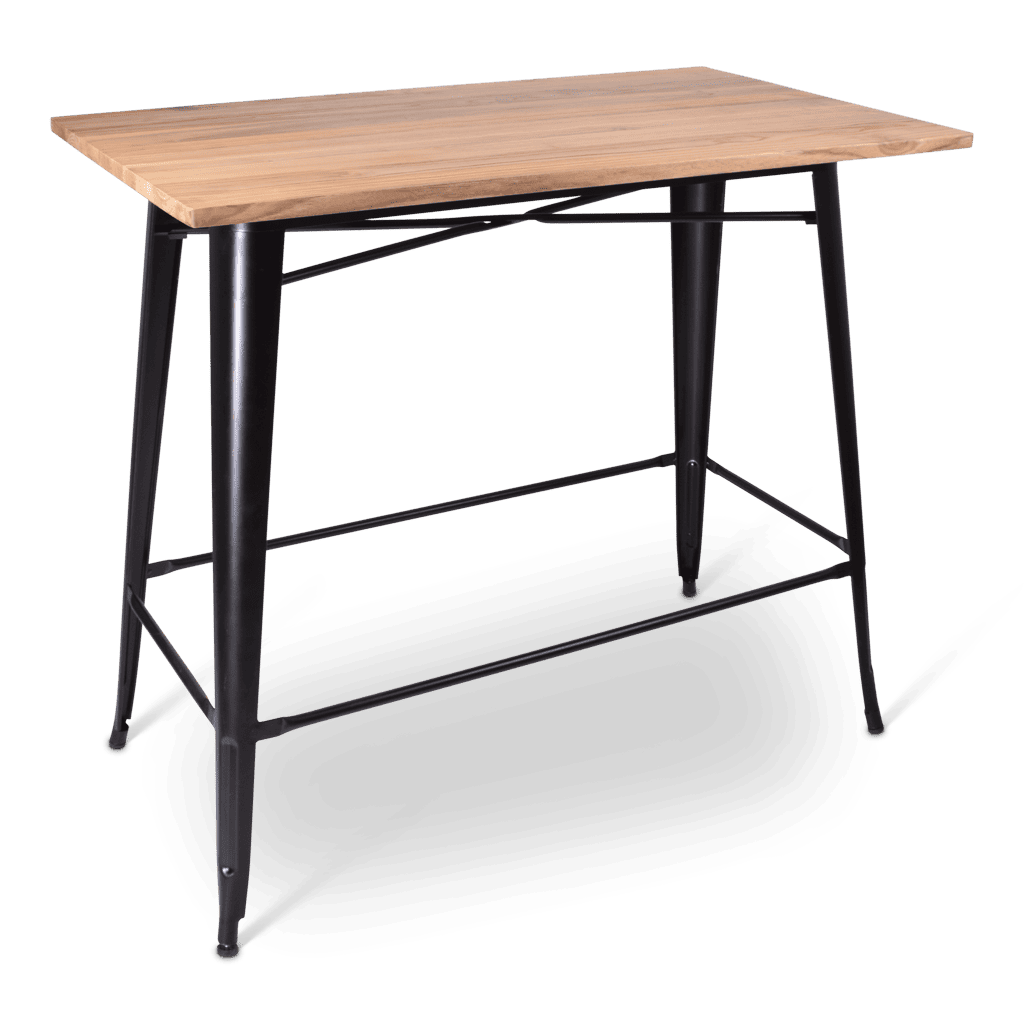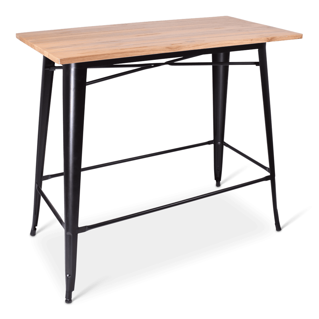 Robuust en met een vintage tintje, dat is de statafel Indus. Met een onderstel van zwart metaal en verschillende tafelbladen past deze statafel op elke locatie.