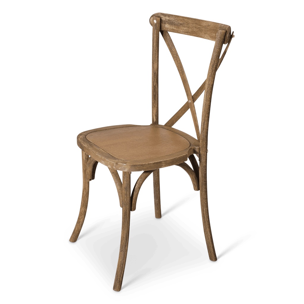 Geef een seintjeDeze houten crossback stoel is te stapelen tot 7 stuks. De stoelen passen goed in een landelijk thema maar ook in een stijlvolle sfeer bij een diner of huwelijk.