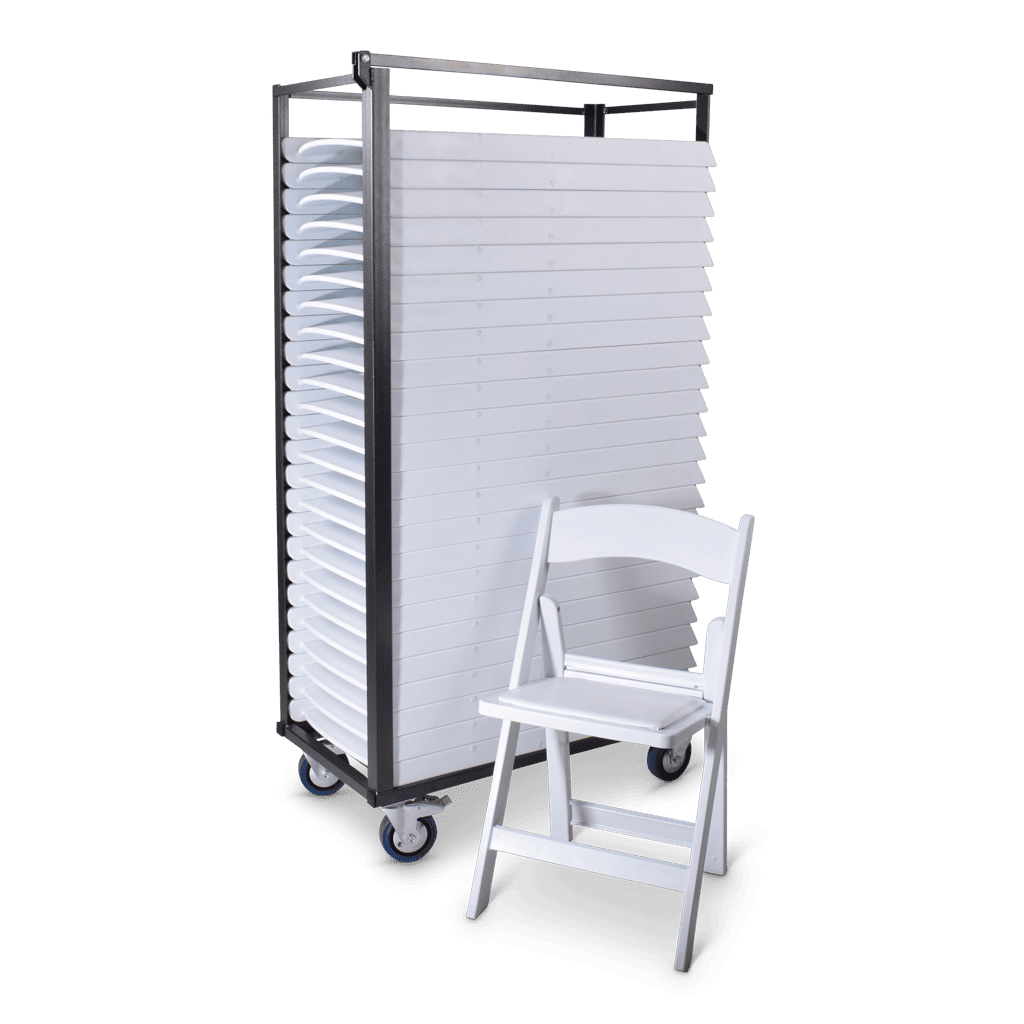 Makkelijk te gebruiken Eems Resin klapstoelen in wit of zwart. Compleet met transportkar!
